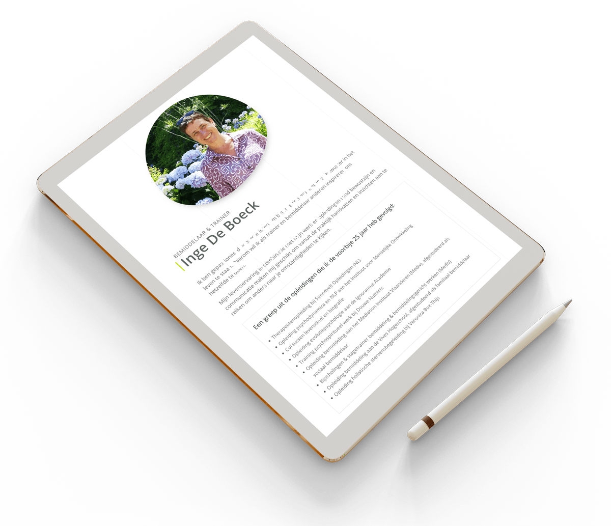 Inge ondersteunt u zowel in situaties waarin u gewoon behoefte hebt aan een goed gesprek als in situaties waarin de communicatie moeizaam verloopt en in beginnende conflictsituaties.
